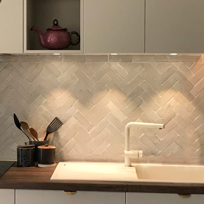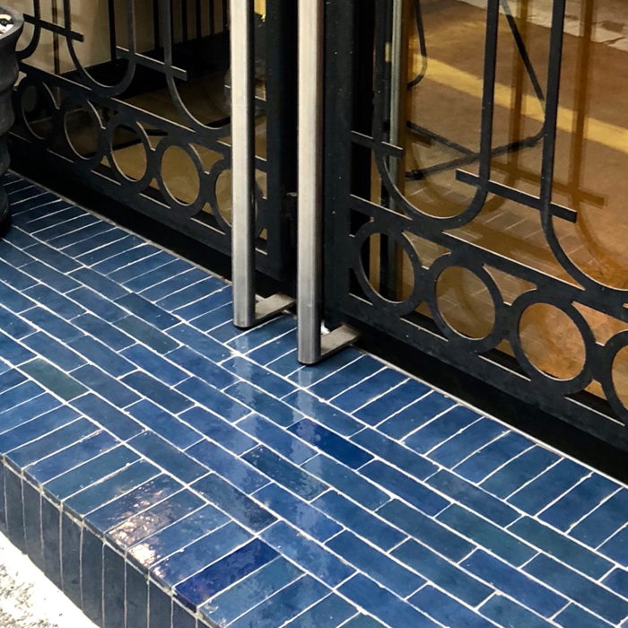 Cette forme de carrelage permet plusieurs possibilités de pose esthétique dont chacun correspond à un style de décoration : en ligne, en chevrons, par rangé de 2, de 3, en décalé, ou encore en cabochon en les combinant avec des petits carrés de zelliges. On peut agréablement marier deux ou trois couleurs pour créer des motifs géométriques et des contrastes.