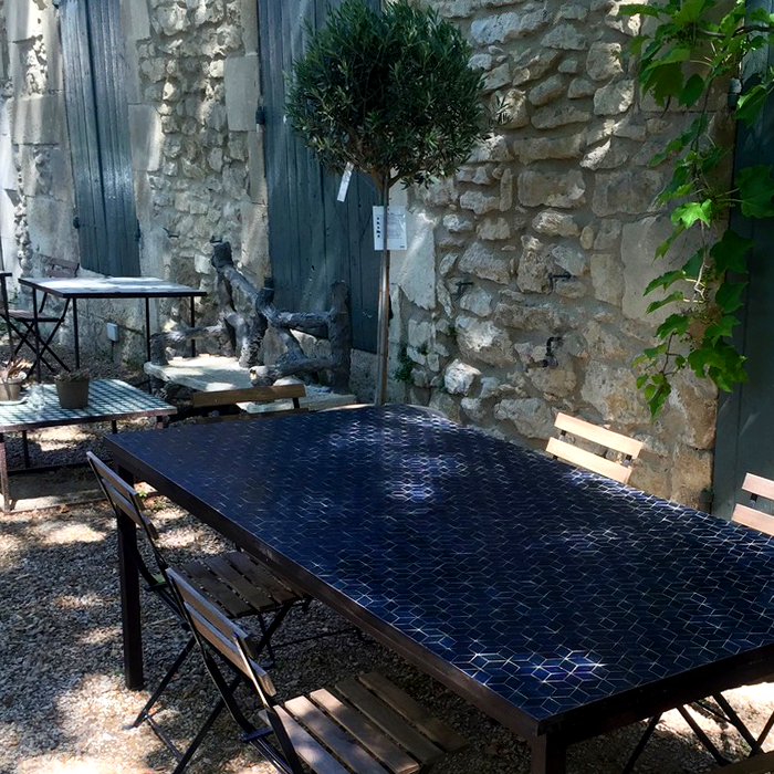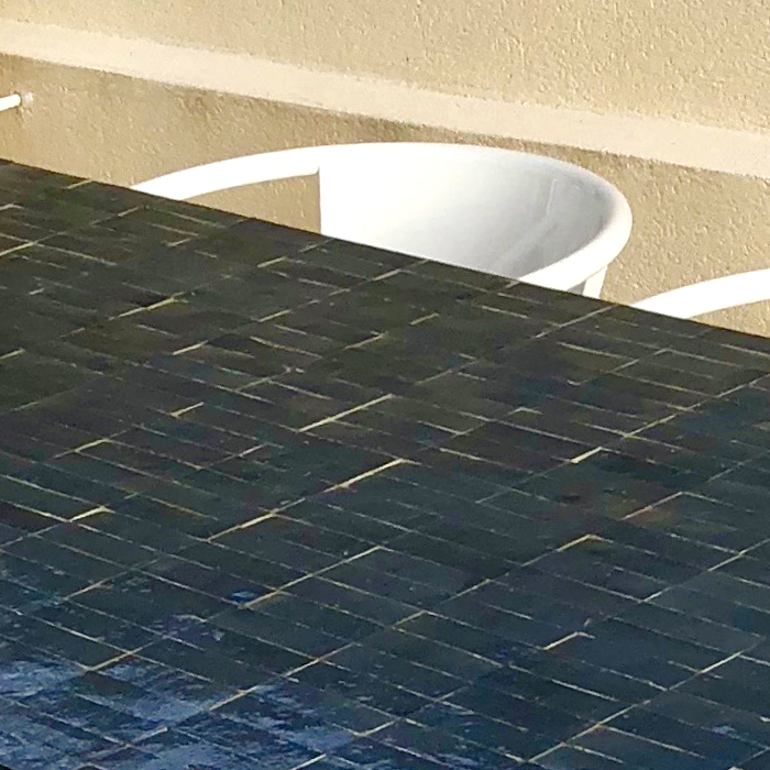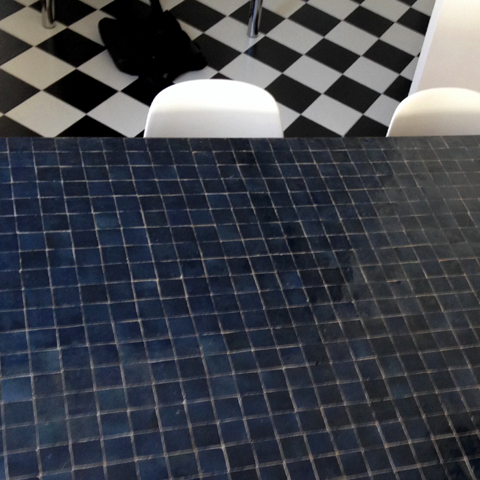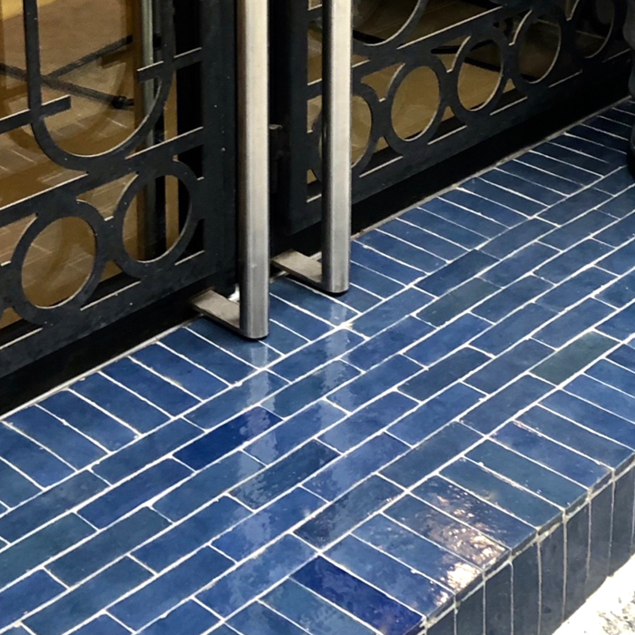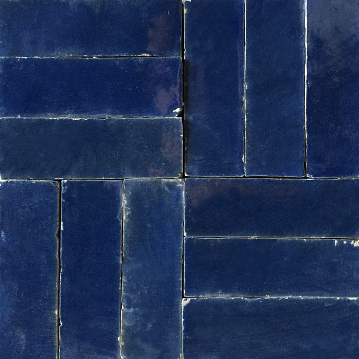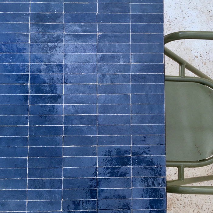 Le bleu nuit, une nuance émaillée à la fois dense et douce selon la pose en joints secs ou large. Aucune préférence quand à l’utilisation de cette gamme colorée, c’est au bon plaisir, que ce soit unie pour un parterre ou sur une table en zellige ou associée au blanc nacre pour un effet contrasté. Le bleu nuit peut également s’associer à d’autres bleus tels que lavande ou profond pour créer une légère variation.